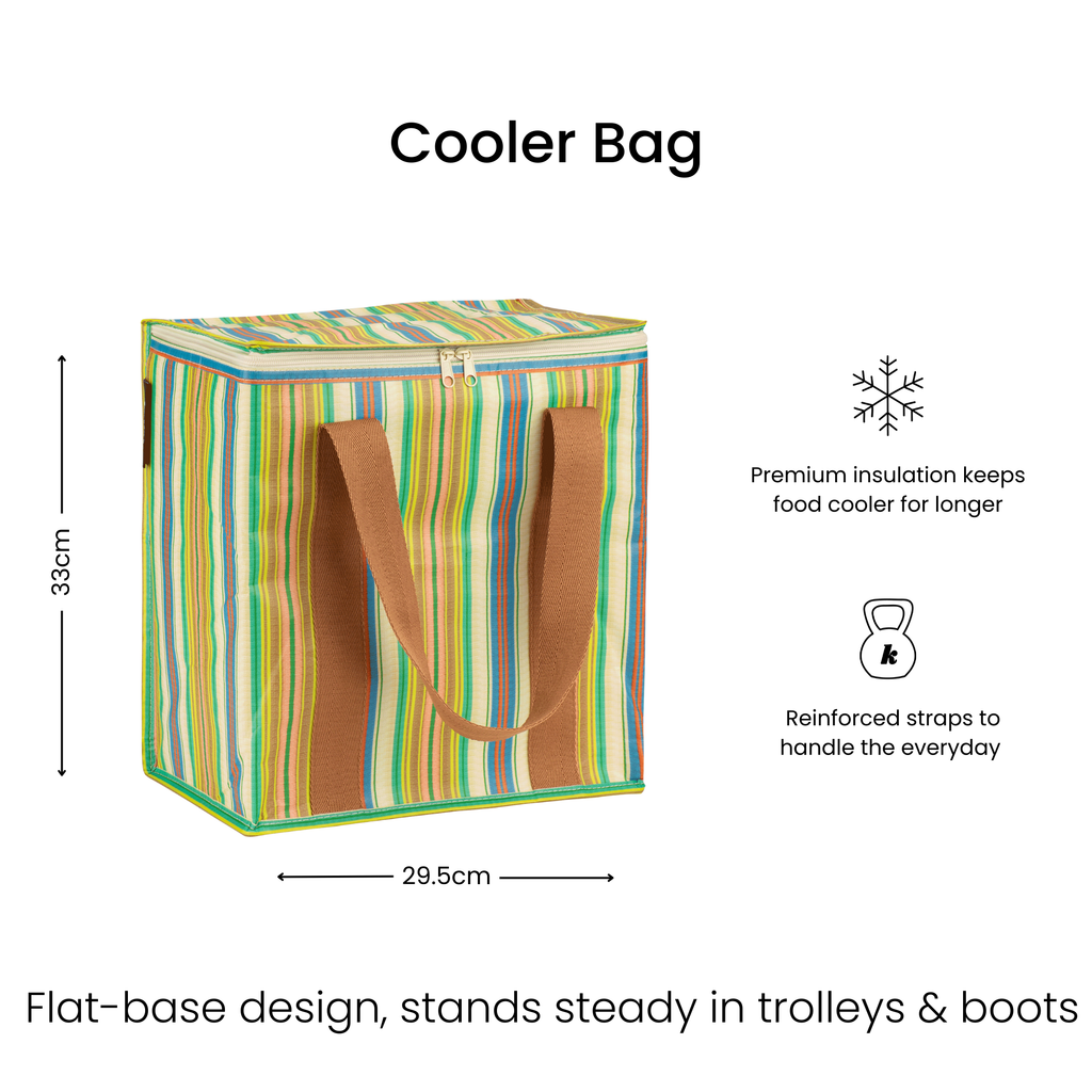 Stay chill with our classic Cooler Bag design that is as functional as it is stylish. Fully insulated it keeps your contents fresh and cool whilst travelling, heading to the beach or simply doing the weekly grocery run.