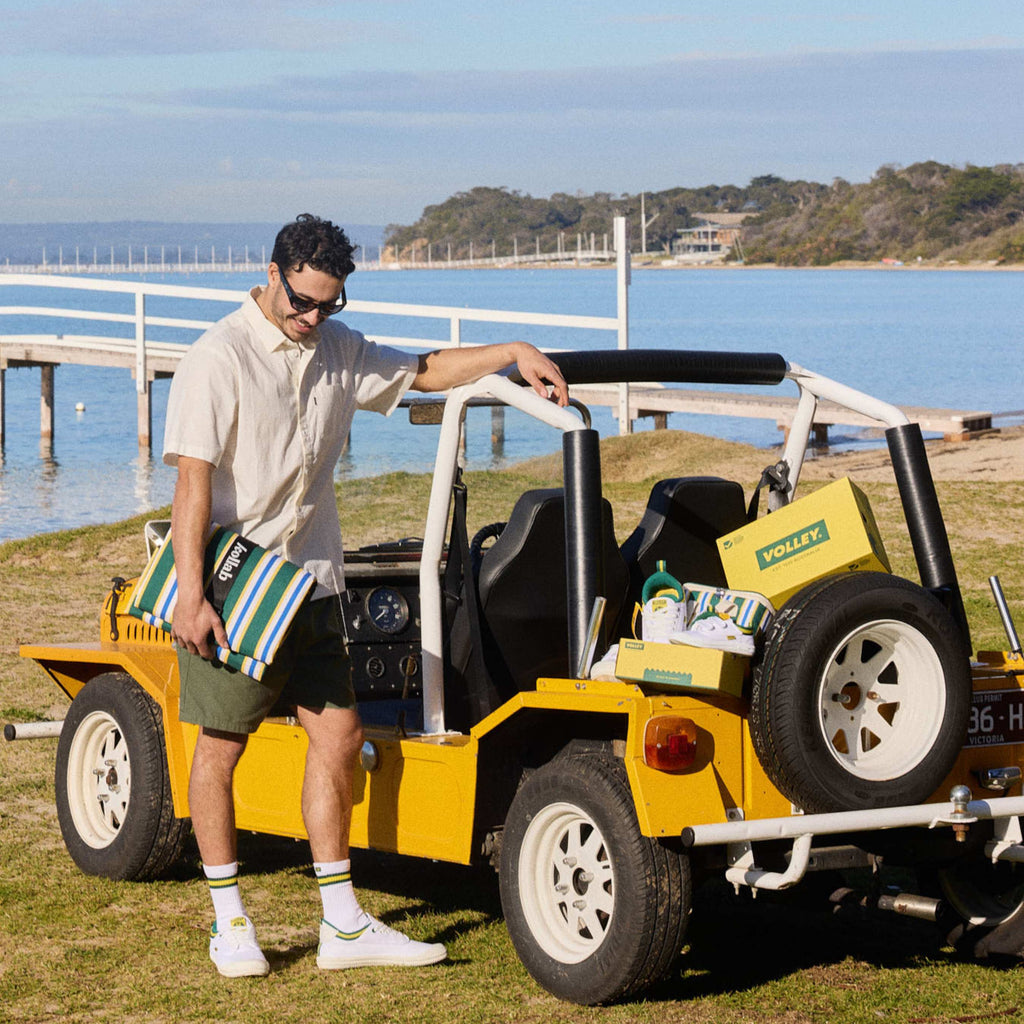 An Aussie classic reimagined. Volley × Kollab brings signature stripes to our most-loved essentials, combining bold design with everyday practicality for pieces you’ll use day in, day out.